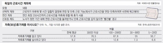 김희성 강원대 법학전문대학원 교수는 “꼭 근로시간 단축이 아니더라도 4차 산업혁명이 도래하면 유연근무제는 확산될 수밖에 없다”며 “주먹구구식 사후대휴보다는 체계적인 저축휴가제를 도입할 필요가 있다”고 말했다.
