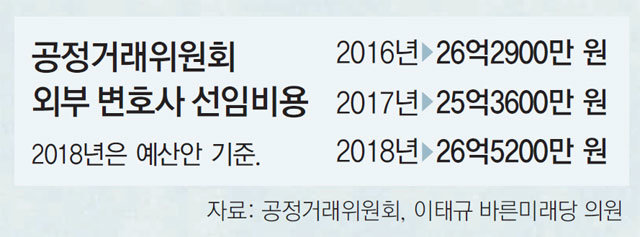 공정위는 과징금 액수가 크거나 법리 다툼의 여지가 많은 사건은 외부 변호사를 선임하고 비교적 간단한 소송은 내부 직원을 통한다고 해명했다.