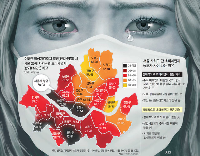 서울 초미세먼지 농도 ‘서고동저’… ‘중-경-삼림’이 갈랐다