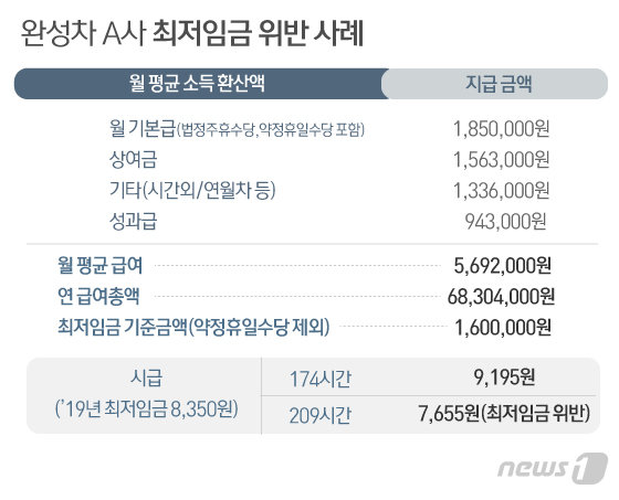 연봉 7000만원도 최저임금 위반…완성차 5개사만 9000여명