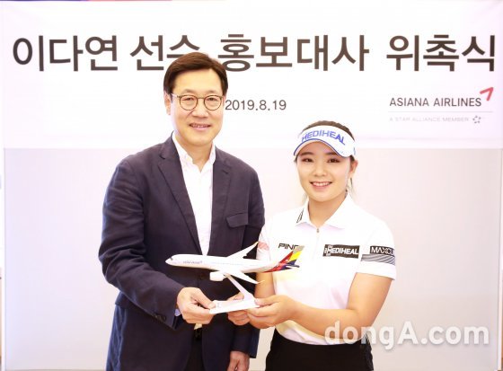 아시아나항공은 ‘2019 아시아나항공 오픈’ 우승자 이다연 선수(메디힐, 22)를 공식 홍보대사로 위촉했다고 19일 밝혔다. 이날 서울 강서구 아시아나항공 본사에서는 홍보대사 위촉식이 진행됐다. 이다연 선수는 향후 1년 동안 아시아나항공이 취항하는 국제선 전 노선의 비즈니스클래스 항공권을 무상으로 지원받는다.