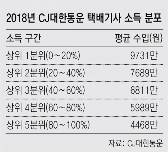 CJ대한통운 택배기사 年평균 소득 6937만원… 1억이상 559명