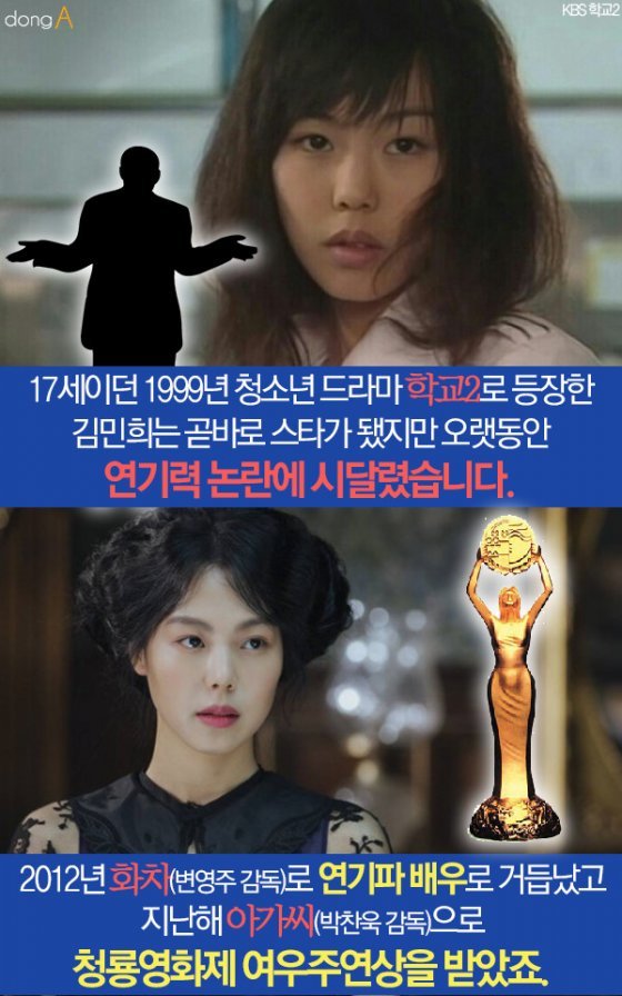 김민희는 곧바로 스타가 됐지만 오랫동안 연기력 논란에 시달렸습니다.