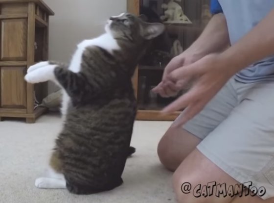‘집사를 믿어!’ 주인 믿고 뒤로 쓰러진 고양이