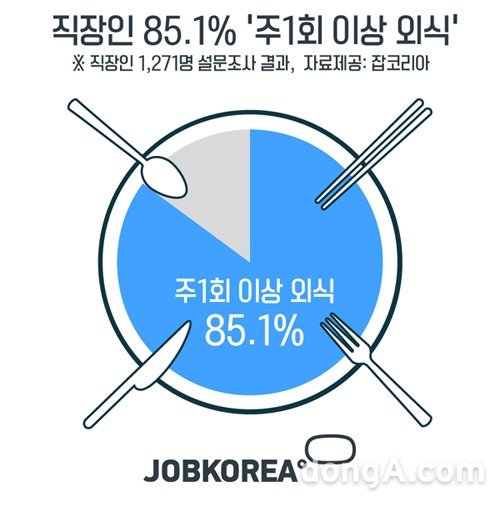 취업포털 잡코리아는 직장인 1,271명을 대상으로 ‘외식인류’를 주제로 설문조사를 실시하고, 그 결과를 9일 공개했다.