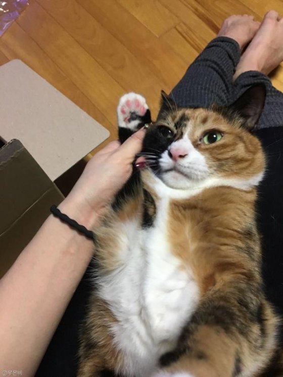 "집사는 내꺼다옹!"..도장 쾅! 찍은 고양이