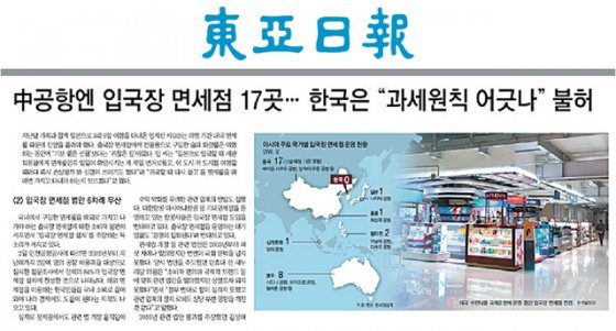 7월 3일자 A4면.문재인 대통령의 지시로 이르면 내년 3월 한국에서도 입국장 면세점이 문을 열 수 있을 것으로 보인다. 현재 78개국 138개 공항에서 입국장 면세점을 운영 중이다.