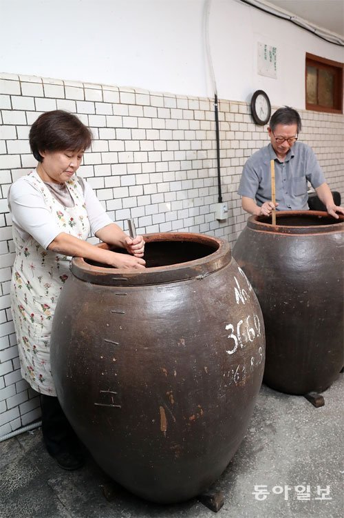 80년 넘는 역사를 자랑하는 목도양조장의 유기옥 대표와 남편 이석일 씨가 막걸리를 빚고 있다. 괴산=전영한 기자 scoopjyh@donga.com○ 3대를 이어온 전통 ‘우리 모두의 유산’