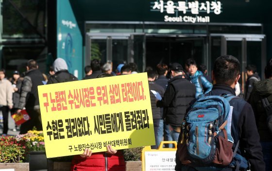 하지만 신시장 입주를 거부하며 구시장에 잔류한 상인들은 물과 전기 공급이 끊긴 지 일주일 만인 지난 12일부터 서울시청 1층 로비에서 연좌 농성에 들어갔다.