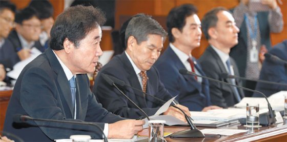 이낙연 국무총리(왼쪽)가 14일 정부서울청사에서 열린 문재인 정부 첫 과학기술관계장관회의를 주재하고 있다. 과기장관회의는 국가 현안 해결에 과학기술 정책이 중요해짐에 따라 노무현 정부 이후 11년 만에 부활했다. 뉴시스이 자리에서 호남 의원들은 “호남 사람들이 왜 오송역으로 돌아서 호남에 가야 하느냐. 호남선 KTX 직선화를 통해 세종역을 신설해 달라”고 요구했지만 이 총리는 “세종역 신설은 어렵다”고 선을 그었다. 이 총리는 세종역을 신설할 경우 청주 대전 등 여타 지역의 경제에 미칠 악영향을 우려한 것으로 전해졌다.