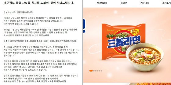 삼양식품 개인정보 유출 사과문 © News1삼양식품이 2018년 하반기 신입·경력 공채 채용을 진행하면서 지원자들의 개인정보를 유출한 사실이 드러났다.