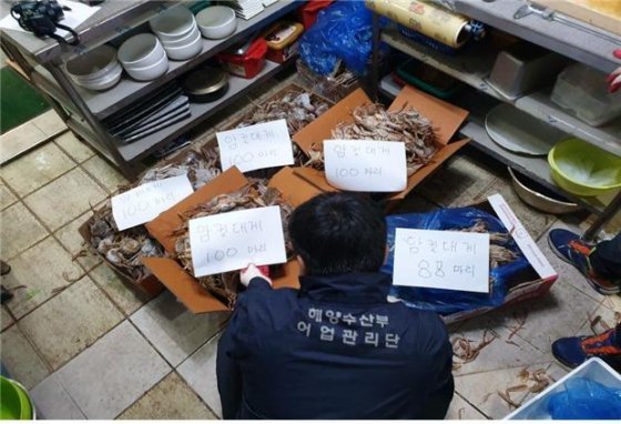 또 수산관계법령에는 암컷대게 연중 포획금지, 포획금지체장 및 금어기(6월~11월), 통발어업 대게 포획금지구역 등을 규정하고 있음에도 불구하고 지난 3년간(2015~2017) 동해어업관리단의 불법 대게 관련 단속건수는 96건을 기록하는 등 불법 대게 유통·판매행위가 지속되고 있다.