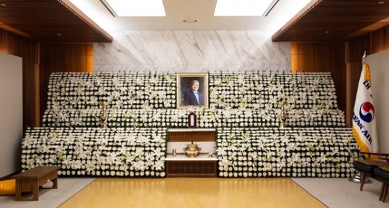 신촌 세브란스 병원 장례식장에 마련된 故 조양호 한진그룹 회장 빈소. 사진=한진그룹 제공한진그룹은 “고인의 시신은 이날 오전 4시경 인천국제공항에 도착, 운구 차량에 실려 빈소로 이동했다”고 전했다.