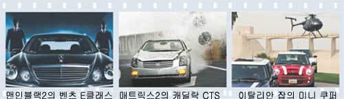 《지난해 개봉한 공상과학 영화 ‘마이너리티 리포트’에는 도요타 렉서스 2054년형 모델이 등장한다. 쫓기던 주인공이 자동차 공장에서 몰고 나온 빨간색 승용차가 바로 렉서스다.이 차는 도요타가 모터쇼 등에서 미리 공개했던 미래형 콘셉트카가 아니다. 순전히 ‘마이너리티 리포트’라는 영화를 위해 디자인해서 제작한 모델이다.영화는 자동차를 홍보하기 위한 효과적인 수단 가운데 하나다. 액션 영화에서 단골로 등장하는 자동차 추격 장면을 보면서 관객들은 자연스럽게 자동차의 성능을 떠올린다. 자동차는 주인공의 신분을 나타내는 소품으로 사용되기도 한다. 자동차업계도 최근에는 영화를 적극적으로 활용하고 있는 추세다.》 7월 개봉한 ‘터미네이터3’에서 여성 사이보그 T-X(크리스타나 로켄)가 나체로 탈취해서 몰고 다닌 차는 렉서스 스포츠카 SC430이다. 이 영화의 감독 조너선 모스토가 실제 타고 다니는 모델이기도 하다. T-800(아널드 슈워제네거)이 몰고 다닌 앰뷸런스는 도요타의 픽업 트럭인 툰드라. 툰드라는 여기저기 부딪히고 찌그러져도 거뜬히 잘 달린다는 이미지를 관객들에게 심어줬다. ‘툼레이더2-판도라의 상자’의 여 주인공 라라 크로포드(앤젤리나 졸리)는 전편의 랜드로버 디펜더에서 지프 랭글러 루비콘으로 옮겨 탔다. 영화는 지프 랭글러가 길도 없는 아프리카의 초원과 사막을 종횡무진 질주하는 장면을 보여준다. 다임러 크라이슬러는 영화에 맞춰 이 자동차의 안팎을 뜯어고쳤다. 일반 모델에 비해 가속 성능을 한층 보강했고 31인치 타이어를 달았다. 다임러는 영화에 나온 것과 똑같이 만든 모델 1000대를 한정 생산해 일반에 공개하기로 했다. 영화 ‘매트릭스2-리로디드’의 최대 수혜자는 캐딜락 CTS다. 여주인공 트리니티(캐리 앤 모스)가 고속도로에서 쫓기는 장면은 영화사상 가장 인상적인 차량 추격 장면 가운데 하나. 트리니티는 이 장면에서 곡예와 같은 운전 솜씨를 보여줬고 CTS는 복고적이면서 동시에 미래적인 이미지를 관객들에게 또렷하게 심어줬다. 장장 15분이나 계속된 이 장면을 찍기 위해 24대의 CTS가 부서졌지만 홍보 효과는 헤아리기 어려울 정도. 하얀 쌍둥이 악당이 몰던 차는 캐딜락 에스컬레이드다. 최근 개봉한 영화 ‘이탈리안 잡’에선 소형차 미니 쿠퍼가 단연 돋보인다. 금고털이범들을 다룬 이 영화엔 레드 블루 화이트 등 3가지 색의 앙증맞은 미니 쿠퍼가 등장한다. 미니 쿠퍼는 작은 몸집을 뽐내기라도 하듯 헬리콥터의 추격을 피해 골목길을 요리조리 질주하고 심지어 지하철역으로 뛰어들기도 한다. 미니 쿠퍼의 원형은 1950년대 말 영국에서 개발된 미니. 구형 미니는 2000년 생산이 중단됐다. ‘미녀삼총사’에는 페라리가 단골로 나온다. 1편에서 세 명의 미녀가 함께 타고 다녔던 차는 페라리 360 모데나. 2편에선 페라리 250GT가 그녀들의 발 노릇을 했다. 2편에서 주인공들을 괴롭히는 악녀 노릇을 하는 데미 무어는 엔초 페라리를 몰고 등장한다. 페라리의 창업자인 엔초 페라리의 이름을 붙인 것만 봐도 이 차의 성능을 짐작할 수 있다. 660마력에 3.65초 만에 시속 100km에 도달하는 슈퍼카로 페라리가 일반 도로용으로 만든 차 가운데 최고의 성능을 자랑한다. 세계적으로 딱 399대만 만들어졌다. 홍석민기자 smhong@donga.com