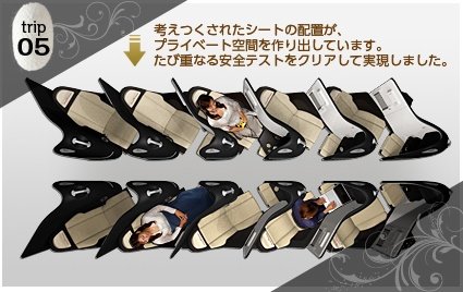 좌석은 140도까지 뒤로 젖힐 수 있는 등받이가 있어 편안한 수면이 가능하다.