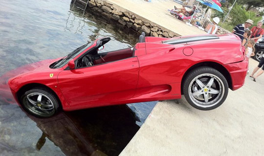 미국 자동차 전문매체 카스쿱은 지난 8일(현지시간) 오전 크로아티아의 아드리아해 북부 파그섬에서 페라리 반쪽은 항구에 걸치고 반쪽은 바다에 빠진 진귀한 사고가 발생했다고 보도했다.