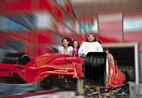가장 인기 있고 스릴 넘치는 놀이기구 ‘포뮬러 로사(Formula Rossa)’는 페라리의 경주용 자동차처럼 잠시 멈추었다가 순간적으로 가속하는 롤러코스터. 정지 상태에서 출발 4.9초 만에 시속 240km에 도달하며 실제 페라리를 탑승한 듯한 느낌을 준다.