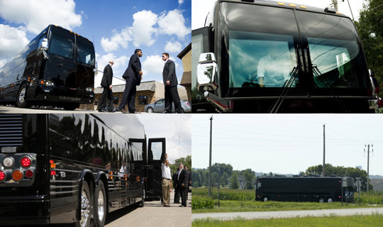 버락 오바마 미국 대통령이 지난 15일(현지시간)부터 3일간 미국 중서부지역 민심탐방을 위한 투어에 나서면서 총격은 물론 로켓 유탄도 견디는 최첨단 전용버스를 이용했다.