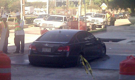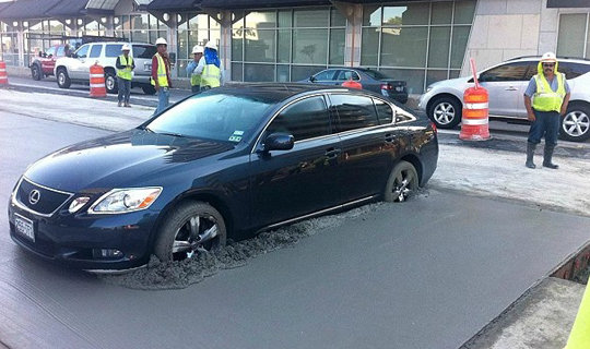 영국 일간 데일리 메일은 지난 16일 오전 미국 텍사스주의 휴스턴 도로포장공사장에서 렉서스 차량이 덜 마른 시멘트 위를 건너려다 그대로 갇혀버렸다고 보도했다.