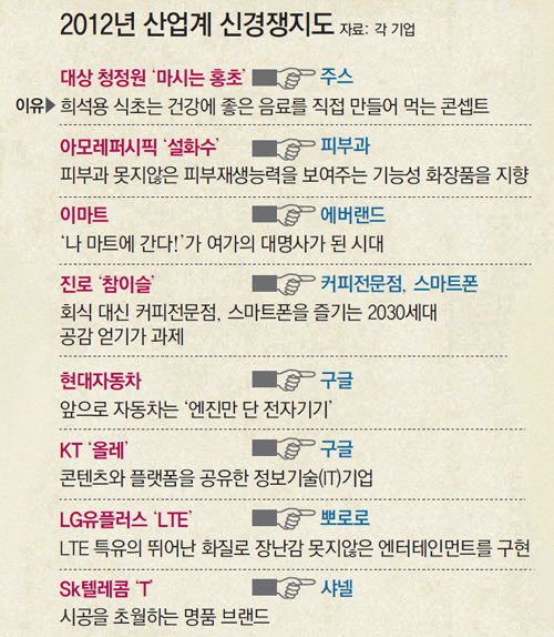 현대차와 이마트의 사례에서 보듯 2012년 산업계는 소비자의 더 많은 시간을 점유하려는 ‘시간점유율’ 경쟁에서 이제 소비자를 붙잡을 수 있는 유무형의 ‘공간’인 플랫폼을 확보하는 데 집중하고 있다.