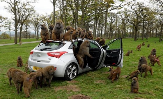 공원 관계자에 따르면 현대차 직원들은 은빛 i30을 갖다놓고 10시간동안 40마리 이상의 개코원숭이들이 마음대로 하도록 지켜봤다.