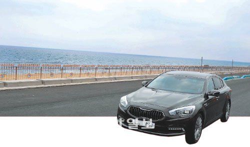 9일 강원 양양군 일원에서 열린 시승 행사에서 기아자동차의 대형 세단 ‘K9’이 달리고 있다. 기아차가 2008년부터 4년 5개월간 5200억 원을 들여 개발한 K9은 고속 주행에서의 높은 안정성과 헤드업디스플레이(HUD) 등 다양한 첨단장치가 돋보인다. 차 이름의 숫자 ‘9’는 최상위 모델임을 뜻한다. 기아자동차 제공기아자동차의 대형 세단 ‘K9’은 한국 자동차산업의 고속 성장을 대변한다. 2002년 현대자동차에 인수되던 10년 전만 해도 기아차는 럭셔리급 대형 세단 부문에서 존재감이 미미했다. 엠블럼을 가리고 당시 기아차의 최고급 차였던 ‘엔터프라이즈’와 K9을 나란히 비교한다면 불과 10년의 간극을 두고 한 회사가 만든 제품이라고 생각하기가 쉽지 않을 것이다.