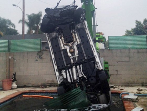 13일(현지시간) 외신들에 따르면 디아스 가족은 아침에 일어나 자신들의 집 수영장에 렉서스가 빠져있는 것을 발견하고 깜짝 놀랐다. 사고발생 당일 이른 새벽 렉서스 은색 세단이 디아스 가족의 집 콘크리트 벽을 뚫고 수영장으로 떨어진 것.