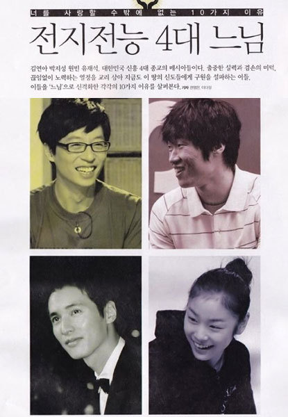 대한민국 4대느님, 유재석-김연아-원빈-박지성 ‘공감 100%’