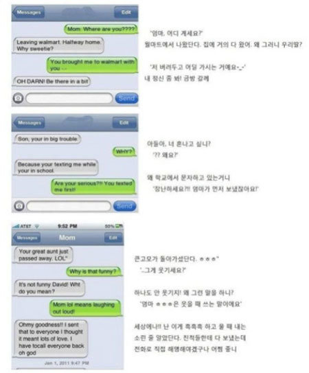 미국 엄마의 문자에 누리꾼들은 “미국 엄마의 문자에서 익숙한 향기가”, “한국 엄마들과 똑같네”, “엄마들 줄임말 모르는 건 세계 공통인가 봐” 등 재밌다는 반응을 보였다.