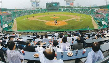 이 밖에 문학구장을 홈으로 쓰는 SK는 8∼16명을 수용하는 스카이박스 36개를 운영하고 있다. 은행, 대형 병원, 제약회사들이 접대를 위해 1300만∼3100만 원에 이르는 연간권을 아낌없이 구입했다. 요리를 해먹을 수 있는 바비큐존 역시 인기가 높다. 롯데의 홈인 사직구장의 중앙 지정석 연간권 500개(좌석당 161만7000원)는 판매 시작과 함께 모두 동이 났다. 700만 관중 시대를 앞둔 프로야구는 이제 단순히 경기를 즐기는 곳을 넘어 사교와 접대 장소로 진화하고 있다.
