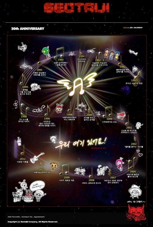 서태지는 27일 자신의 홈페이지 ‘서태지닷컴’에 20주년 이벤트 공지와 함께 자신의 20년 주요 활동 도표 그림을 공개했다.