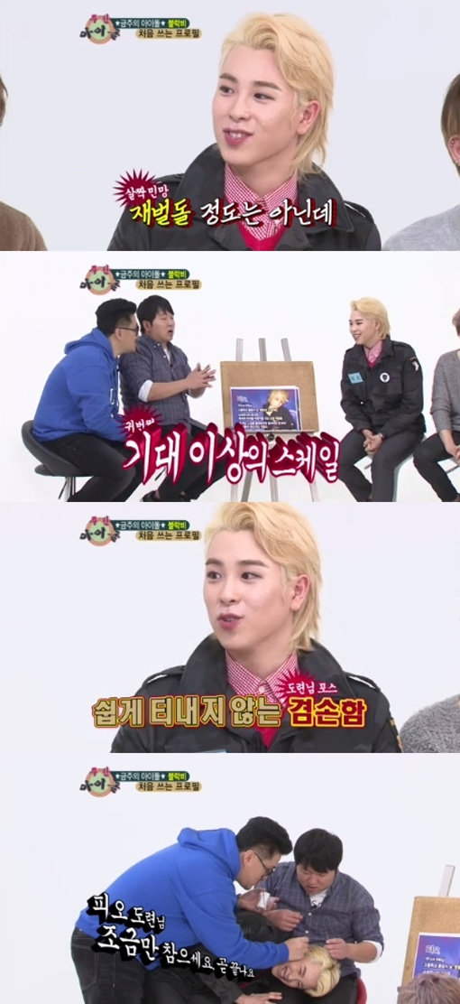 피오는 “재벌돌까지는 아니다”며 겸손하게 말했다. 이에 MC 정형돈은 “아버지가 20살 기념으로 B사 애마 선물했다던데”라고 물었다.