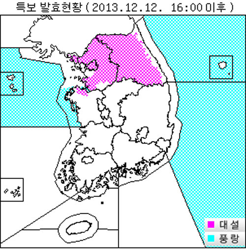 *기상특보 현황 : 2013년 12월 12일 16시 00분 이후 (2013년 12월 12일 15시 30분 발표)