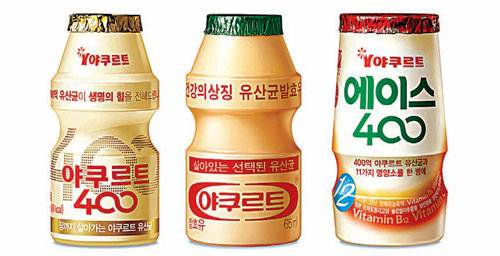 한국야쿠르트의 성공을 이끈 제품은 ‘야쿠르트’ ‘에이스400’ ‘야쿠르트400’ 등 액상 발효유 삼총사이다. 장남격인 야쿠르트(65mL)는 이제 발효유의 대명사가 됐다. 회사 관계자는 “7일간 장기 배양한 65억 마리 이상의 유산균이 신체 면역력 강화를 도와준다”며 “한 병 값도 2008년 매긴 150원을 유지하고 있는 ‘착한 제품’”이라고 말했다. 야쿠르트는 1971년 8월 국내 최초의 유산균 발효유 제품으로 출시됐다. 1977년 8월 100만 병 판매를 돌파한 이래 지난해 11월에는 출시 41년 만에 누적 판매량 450억 병을 넘어서며 국내 식·음료 단일 브랜드 사상 최다 판매기록을 이어가고 있다. 현재 하루 평균 250만 병 판매로 연매출 1200억 원을 기록하고 있다.