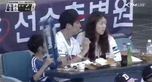 특히 이들 옆에 있는 남자 아이가 눈길을 끌었다. 장신영의 아들로 보이는 이 아이는 삼성라이온즈의 유니폼을 입고 강경준의 옆에서 두 사람과 함께 앉아 야구를 관람했다.