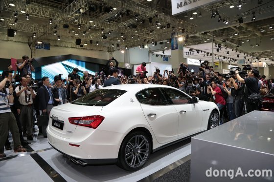 사진=2014 부산국제모터쇼에서 공개된 마세라티 기블리파워트레인은 포르쉐 마칸과 같은 V6 엔진을 탑재해 최고출력 350마력 또는 425마력으로 제공하거나, 최고출력 560마력의 V8 엔진을 채택할 것으로 전망된다. 디젤엔진의 경우 각각 최고출력 250, 275, 340마력 모델로 나뉘어 출시된다.