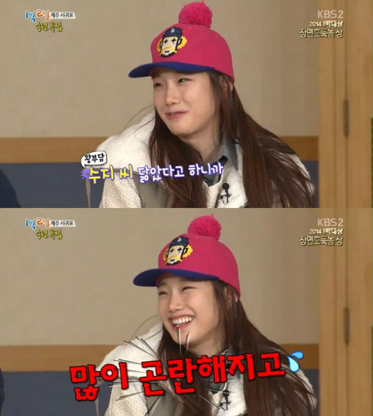 앞서 ‘1박2일’에서 가수 정준영은 모닝엔젤로 출연한 가수 수지에게 “막내 작가(이슬기 작가) 누나에요?”라고 착각했을 정도로 수지와 닮은꼴로 알려진 바 있다.