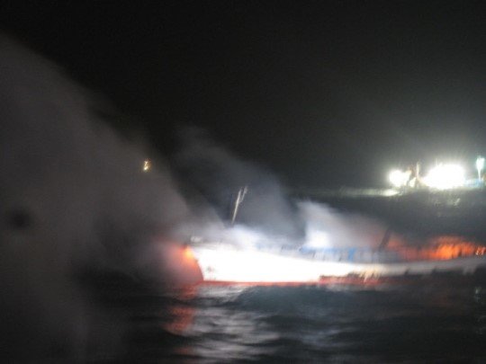 30일 동해해양경비안전본부에 따르면 30일 오전 5시 13분께 독도 북동방 5마일 해상에서 조업 중이던 제주선적 ‘103 문성호’에서 화재가 발생했다.