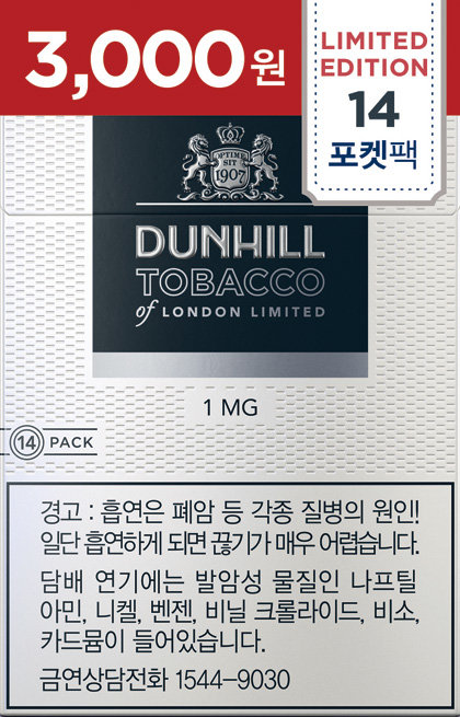 브리티쉬 아메리칸 토바코 코리아(이하 BAT 코리아)가 회사의 대표 브랜드 ‘던힐’ 가운데 인기 제품인 ‘던힐 1MG’를 14개비 포켓팩으로 새롭게 선보인다. 한정판으로 출시되는 ‘던힐 1MG 포켓팩’은 3000원의 가격으로 GS25와 CU 편의점에서 판매된다.