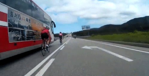 자전거용 블랙박스 공개영상 캡처.얼마 전 지방도로 가장자리를 떼로 달리던 자전거가 지나가던 고속버스에 휘청거리며 넘어질 뻔 한 일이 발생했다. 이 같은 일이 알려지면서 자전거와 자동차를 대표하는 커뮤니티가 온라인상에서 맞붙어 서로의 입장을 내세우며 비난을 퍼부었다. 결국 해당 고속버스 운전기사에게 ‘승무정지’ 징계가 내려져 논란은 더욱 가중되고 있다.