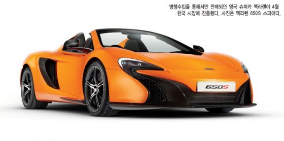 맥라렌은 페라리와 더불어 F1 경기에 가장 오래 참가하고 우승을 많이 한 슈퍼카다. 인기 모델인 650S는 최고출력 650마력, 제로백 3초를 자랑한다. 맥라렌 서울 관계자는 “속도와 타인의 시선을 즐기는 다양한 연령대의 사람이 650S를 많이 찾는다. 특히 650S의 컨버터블 모델인 스파이더에 대한 반응이 뜨겁다”고 말했다.