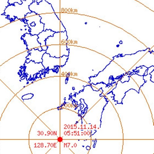 일본 서남부 규슈 가고시마(鹿兒島)현 서쪽 앞바다에서 규모 7.0으로 추정되는 지진이 14일 오전 5시 51분 발생했다.