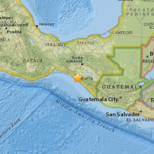 미국 지질조사국(USGS)에 따르면 멕시코 남부 치아파스 주 트레스 피코스 동북동으로 9km 떨어진 지점으로 지하 97.8km이 진원으로 알려졌다.