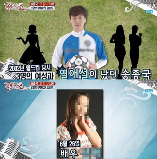 당시 송종국은 한 여배우와 열애설이 터졌고, 일주일 후에 또 다른 여자 연예인과 열애설에 휩싸인 바 있다.