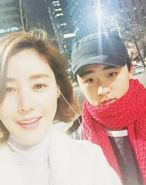 사진 속 김성령과 아들 준호군은 나란히 이어폰을 귀에 꼽고 있으며, 빨간색 목도리를 착용한 준호군의 잘생긴 외모가 눈길을 끌었다.