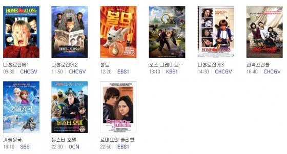 성탄절인 오늘 TV방송에서는 성탄절 대표 영화 ‘나홀로 집에’부터 최근 어린이들의 사랑을 받았던 애니메이션까지 방영될 예정이다.