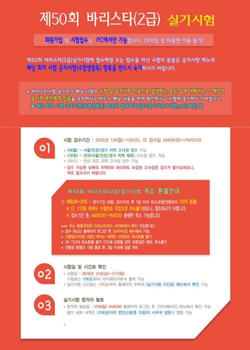 바리스타(2급) 실기시험 접수, 유의사항 알 것