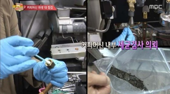 커피머신 세균, 사진=불만제로 방송 이미지 캡쳐사무실과 가정에서 사용하는 커피머신에 수많은 세균이 존재한다고 밝혀져 화제다.