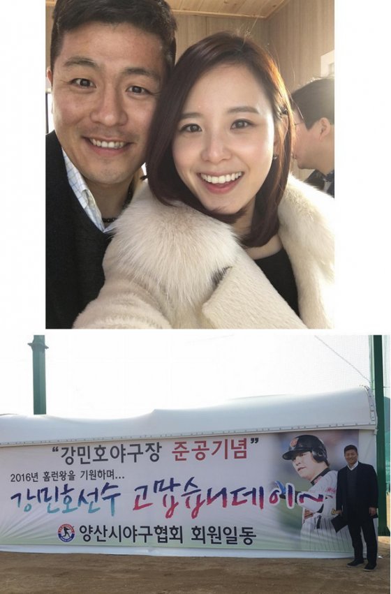이에 강민호 야구장 준공식을 기념해 강민호의 아내 신소연 씨가 SNS를 통해 인증샷을 공개했다.