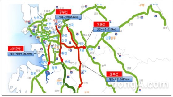 또한 국토부는 고속도로상 지정체가 잦은 40개소에서 우회도로 안내서비스와 국도에서는 고속도로 진입 전에 경로 선택에 도움이 되도록 14개소에서 도로전광판(VMS)을 통해 고속도로 혼잡상황을 제공한다.